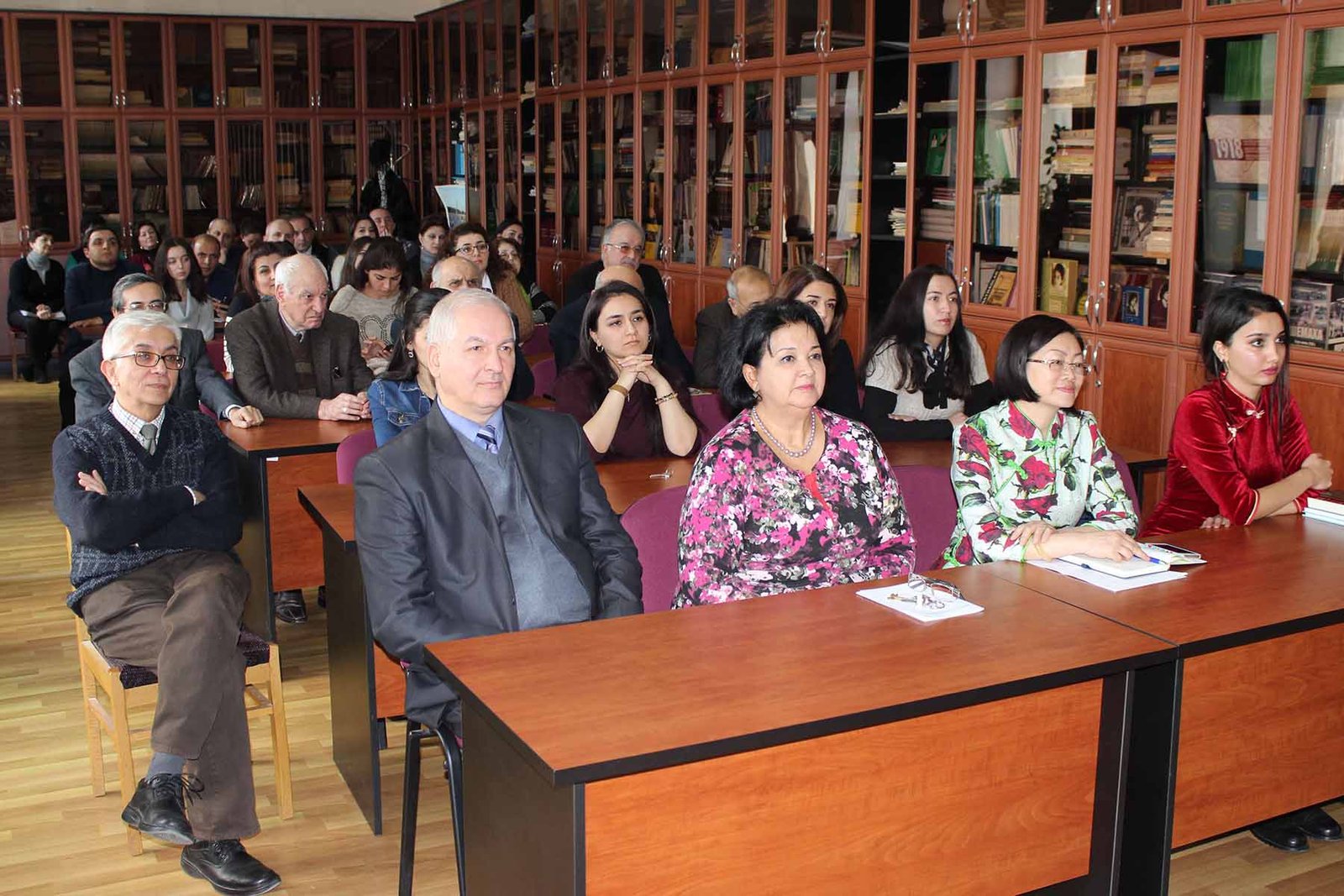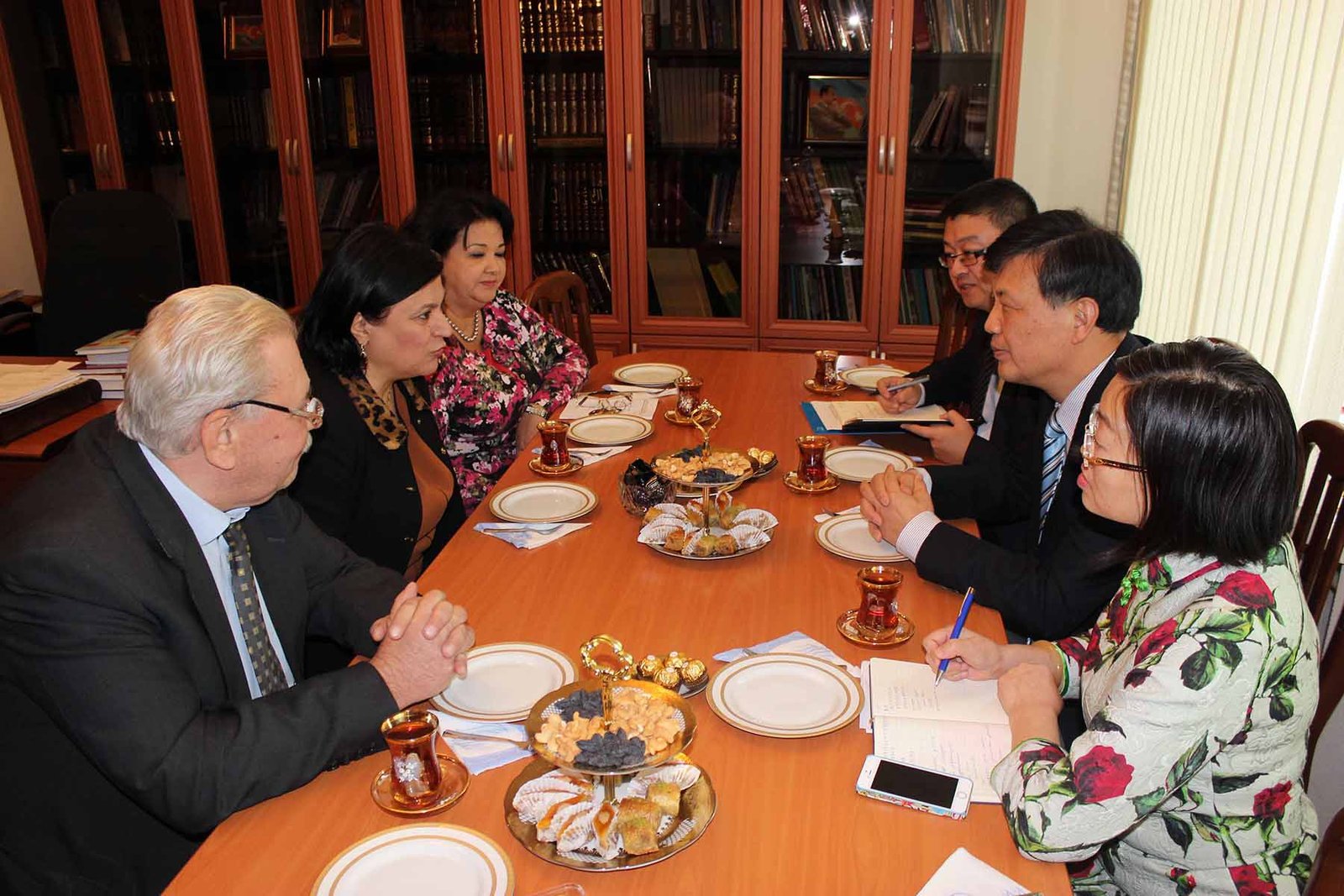 Директор Института востоковедения, член-корреспондент НАНА Говхар Бахшалиева в своем выступлении проинформировала гостей о научных направлениях руководимого ею учреждения. Она представила гостям книги, изданные сотрудниками института о китаеведении.